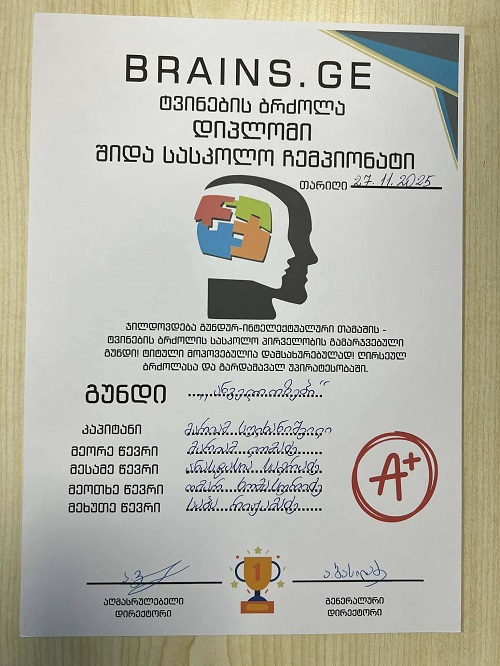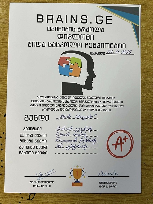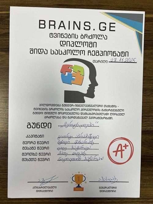 27 ნოემბერს სკოლაში ჩატარდა გუნდური ინტელექტუალური თამაშის -„ტვინების ბრძოლა“ შიდასასკოლო ჩემპიონატი.
