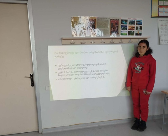 გაკვეთილი მეტად საინტერესოდ წარიმართა, მე-7 კლასელმა პრეზენტაციის მეშვეობით წარმოაჩინა, თუ როგორი იქნებოდა სამყარო დიფუზიის პროცესის გარეშე.
