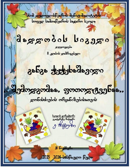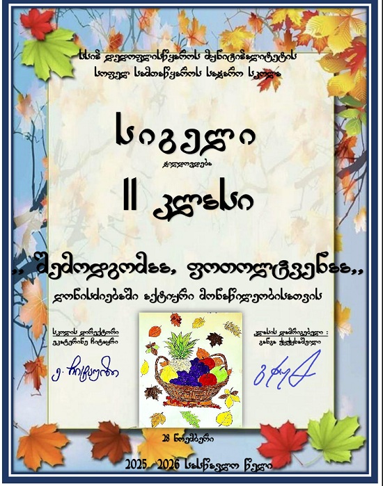 II კლასში, დაწყებით კლასის მასწავლებლის, განგა ჭუჭუხაშვილის ინიციატივითა და ორგანიზებით, გაიმართა საკლასო ღონისძიება - „შემოდგომაა, ფოთოლცვენაა“.