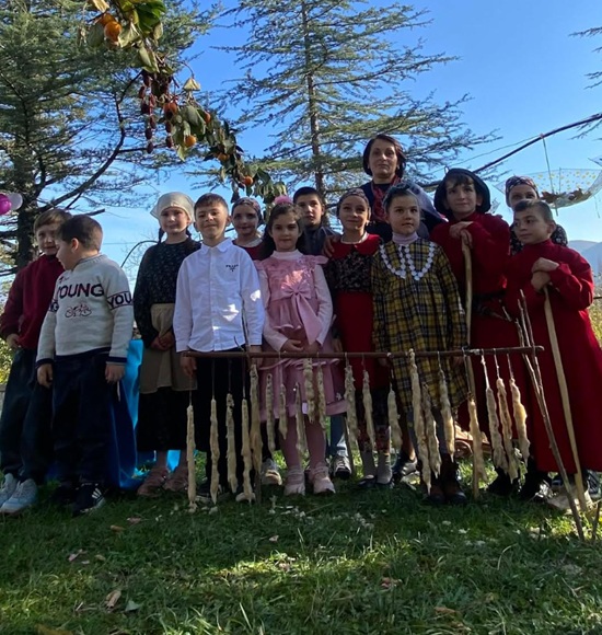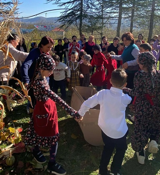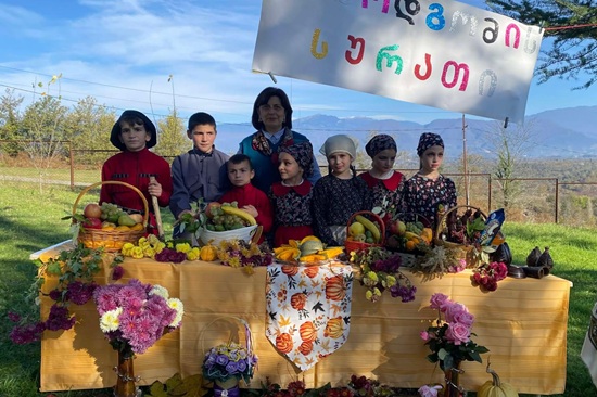 ბავშვებმა და მასწავლებლებმა დიდი მონდომებით მოაწყვეს ეთნოგრაფიული კუთხე, გამოიტანეს ძველი საყოფაცხოვრებო ნივთები, სოფლის ატრიბუტები და შემოდგომის ნობათი, გამოფინეს შემოდგომის თემატიკასთან დაკავშირებული ნახატები და ამოავლეს ჩურჩხელები.