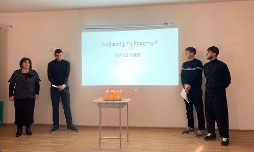 მოსწავლეებმა გაიხსენეს, რომ და 1988 წლის 7 დეკემბერს, 6,8-7,2 მაგნიტუდის სიმძლავრის მიწისძვრამ სრულიად დაინგრა ქალაქი სპიტაკი და 58 სოფელი მის გარშემო.