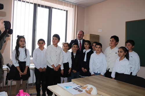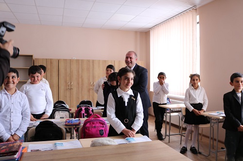 მინისტრი სკოლის მოსწავლეებს, მასწავლებლებსა და თანამშრომლებს შეხვდა და მათ თანამედროვე სტანდარტების შესაბამის საგანმანათლებლო გარემოში სწავლის გაგრძელება მიულოცა.