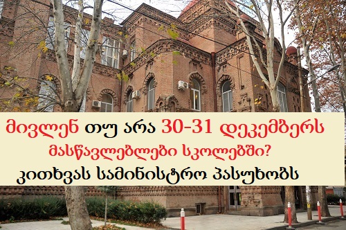 „29 დეკემბრიდან არდადეგები იწყება. 30-31 დეკემბერი ოფიციალური უქმე არ არის, დირექცია წყვეტს საკითხს... თუ დირექტორი გადაწყვეტს, 31 დეკემბერს იმუშაონ მასწავლებლებმა, ისინი სამსახურში უნდა გამოცხადდნენ - სკოლის ხელმძღვანელები მსგავს საკითხებს თავად არეგულირებენ“, - აღნიშნეს სამინისტროში.