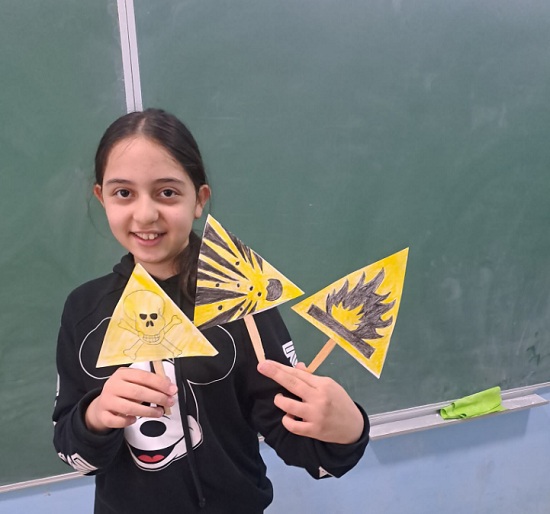 მოსწავლეებმა, პედაგოგ ლიანა ქსოვრელთან ერთად, ყურადღება გაამახვილეს საყოფაცხოვრებო ნივთიერებებსა და მათ უსაფრთხოებაზე, როგორ უნდა გამოიყენონ, დააკვირდნენ გამაფრთხილებელ ნიშნებს, მოიხმარენ წესების დაცვით.
