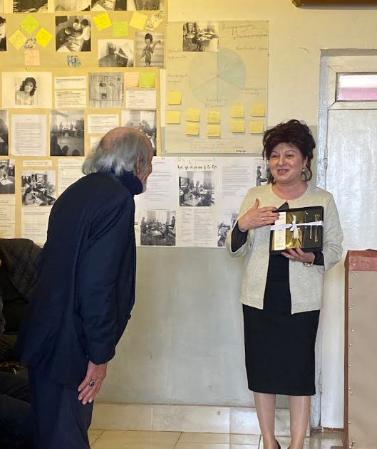 საპატიო სტუმარს საჩუქარი გადასცა სკოლის დირექტორმა - ლენა კარაპეტიანმაც და სტუმრობისა და საინტერესო შეხვედრისთვის მადლობა გადაუხადა.