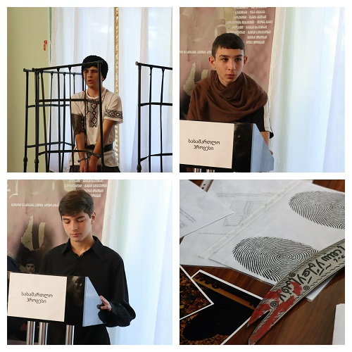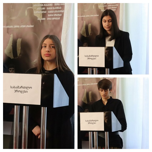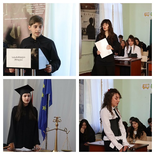 მოსწავლეებმა, მოსამართლის, ადვოკატის, პერსონაჟის როლები მოირგეს, ნაფიც მსაჯულთა როლში კი იყვნენ სპეციალურად მიწვეული სტუმრები.