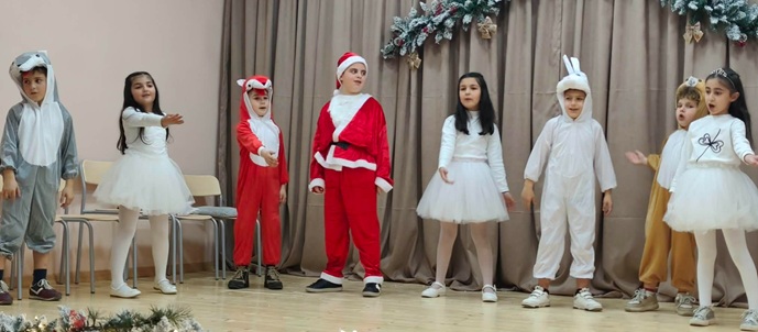 პატარები მაყურებლის წინაშე სიმღერებით, ლექსებითა და ცეკვებით წარდგნენ და ზღაპრული სადღესასწაულო განწყობა შექმნეს