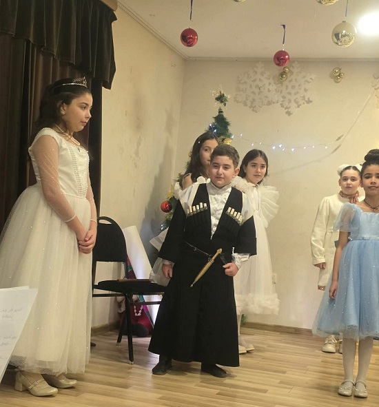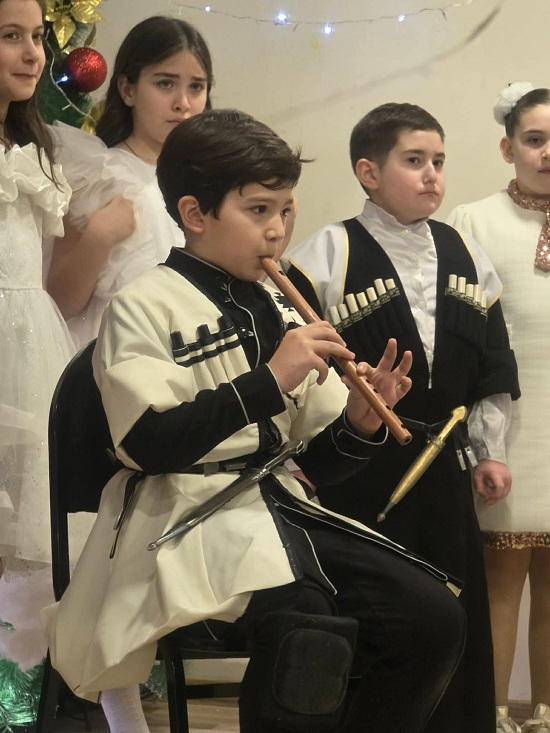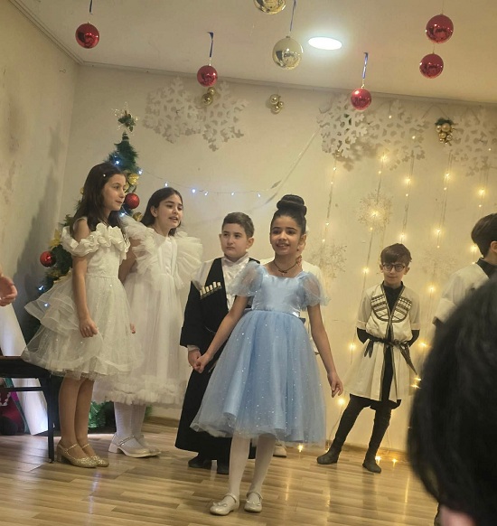 მე-4 კლასელთა პროგრამა გამორჩეული იყო სადღესასწაულო განწყობითა და მრავალფეროვანი ნომრებით. მოსწავლეებმა სიმღერებით, ლექსებითა და სცენური გამოსვლებით გააცოცხლეს საშობაო-საახალწლო თემატიკა და დამსწრე საზოგადოებას თბილი ემოციები აჩუქეს.