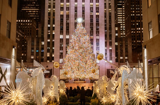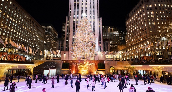 მანჰეტენზე, როკფელერის ცენტრში, საახლწლო ნაძვის ხის ანთება გრანდიოზული მოვლენაა, რომელსაც ყოველ წელს შთამბეჭდავი ღონისძიება ეძღვნება. 1933 წლიდან ყოველწლიურად ოფიციალურ ცერემონიალზე 45 000 ნათურა ინთება.