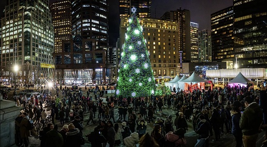 ვანკუვერის საშობაო ნაძვის ხე ნოემბრის ბოლოს აინთო და ცოცხალ მისალოც ბარათს ჰგავს - კაშკაშა და სადღესასწაულო.