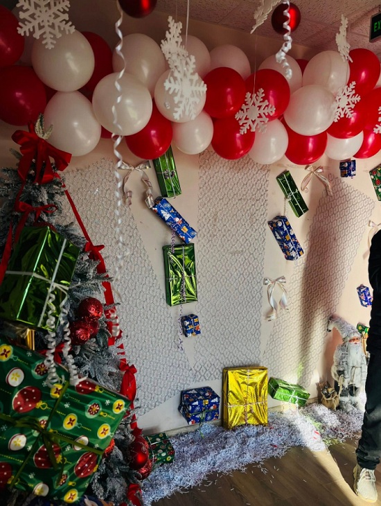 საზეიმოდ მოირთო და მოიკაზმა სკოლა. ახალი წელის მოახლოებასთან ერთად სკოლამ სადღესასწაულო სამოსი მოირგო. წითელი და თეთრი ბუშტები, ფუმფულა თოვლის პაპამ და ფერადმა საჩუქრებმა მოსწავლე-მასწავლებლებს კიდევ ერთხელ შეახსენა, რომ ახალი წელი სასწაულების დროა.