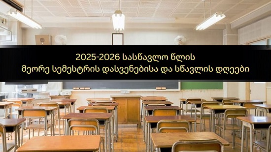 2025-2026 სასწავლო წლის მეორე სემესტრი 15 იანვრიდან განახლდა. etaloni.ge გთავაზობთ ინფორმაციას, მიმდინარე სემესტრის სასწავლო დღეებისა და მნიშვნელოვანი თარიღების შესახებ, რაც პედაგოგებს დაეხმარება სხვადასხვა ტიპის აქტივობების წინასაწარ დაგეგმაში.
