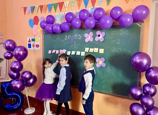გაკვეთილი დატვირთული გახლდათ სხვდასხვა ფერადი და სახალისო აქტივობებით: იისფერი პატარა ყვავილებით მოსწავლეებმა ააწყვეს „ი“ და „ა“ ასოები, წაიკითხეს ლექსები დედაენაზე, როლური თამაშით გააცოცხლეს გოგებაშვილის მოთხრობები, დაფაზე მაგნიტური ასოებით დაწერეს: „აი ია“.