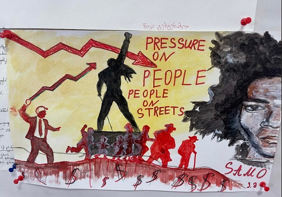 შეექმნათ პრაქტიკული ნამუშევრები, სადაც გამოხატავდნენ საკუთარ პოზიციას აქტუალურ თემებთან დაკავშირებით. იქიდან გამომდინარე, რომ ხელოვნება პროტესტის გამოხატვის ერთ-ერთი ყველაზე ეფექტური ფორმაა, ხელოვნების ნაწარმოების „სამეტყველო ენა“ უნივერსალურია, ის იყენებს სახვითი ხელოვნების გამომსახველობით ელემენტებს და პრინციპებს, ასევე ნებისმიერ ტექნიკას თუ დარგს, რათა გამოხატოს აზრი, თუ რის წინაშე ილაშქრებს. არჩეულმა პროექტმა შესაძლებლობა მისცა მოსწავლეებს თავად აერჩიათ სასურველი თემა პროტესტის გამოსახატად. პრაქტიკული სამუშაოს შესრულებისას, ზოგიერთმა მოსწავლემ იმუშავა ჯგუფურად, ზოგმა - ინდივიდუალურად. შედეგად, მოსწავლეების ნამუშევრები გამოფენის სახით წარდგა აუდიტორიის წინაშე, რამაც აღფრთოვანება გამოიწვია.