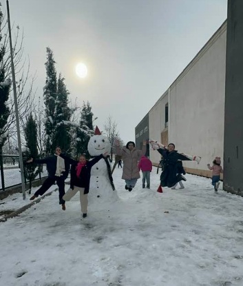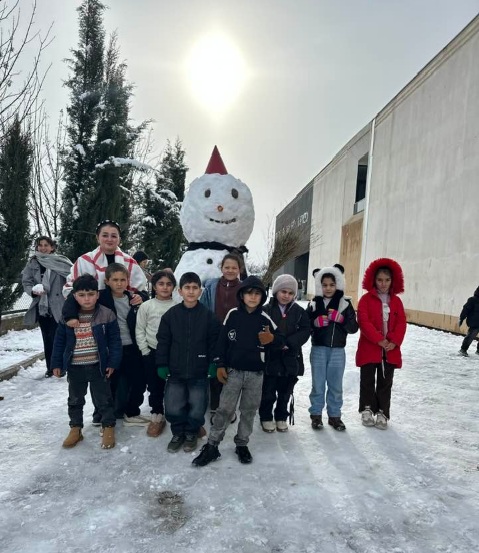 თეთრად შეფერილმა გარემომ მოსწავლეებს განწყობა აუმაღლა. მათ თოვლში ითამაშეს, იგუნდავეს და უზარმაზარი თოვლის ბაბუაც დააზადეს.