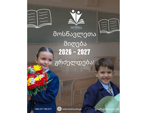 ამჟამად, სკოლა „ცოდნაში“ 2026–2027 სასწავლო წლისათვის მოსწავლეთა რეგისტრაცია მიმდინარეობს. რეგისტრაციისთვის შეგიძლიათ გადახვიდეთ მითითებულ ბმულზე: https://forms.gle/zQcj1KQScoUcMCrX9