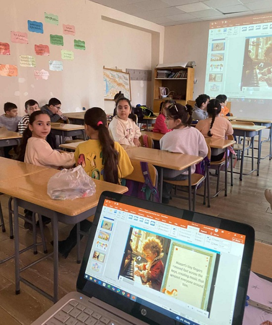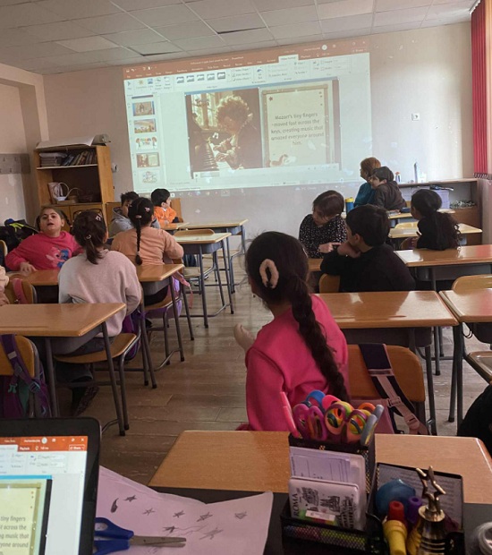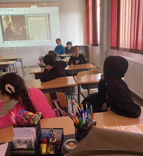 ინგლისურის მასწავლებელმა - ჯილდა ჩაჩანიძემ მე-3ა და მე-3ვ კლასებში ჩაატარა საინფორმაციო გაკვეთილი - „მოცარტის ბავშვობის წლები“.