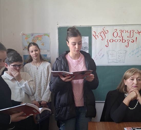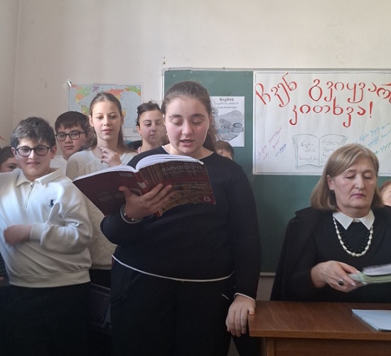 სკოლის მეექვსე, მერვე და მეათე კლასების მოსწავლეებმა (ქართული ენისა და ლიტერატურის მასწავლებელი მთვარისა ახვლედიანი) სასკოლო საზოგადოების წინაშე საუკეთესო მხატვრული ნაწარმოებები წაიკითხეს, შემდეგ კი მსმენელთა ჩართულობით იმსჯელეს წაკითხულის დედააზრზე, გამოიტანეს დასკვნები, შეჯერდნენ წიგნის უმნიშვნელოვანეს როლსა და კითხვის აუცილებლობაზე.