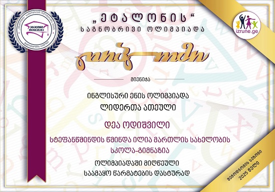 ინგლისური ენის ოლიმპიადაშივე, შესაბამისი კლასის გამარჯვებულთა შორის, საპატიო ადგილს იკავებს მე-8 კლასელი დეა ოდიშვილი.