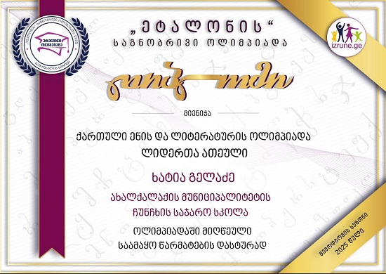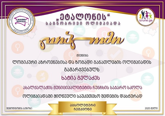 ხატია გელაძე ქართული ენისა და ლიტერატურის, მათემატიკის და ინგლისური ენისა ოლიმპიადების ლიდერთა ათეულში მოხვდა, ლოგიკური აზროვნებისა და ზოგადი განათლების ოლიმპიადაში კი, შესაბამისი კლასის, საქართველოს აბსოლუტური ჩემპიონის სტატუსი მოიპოვა.