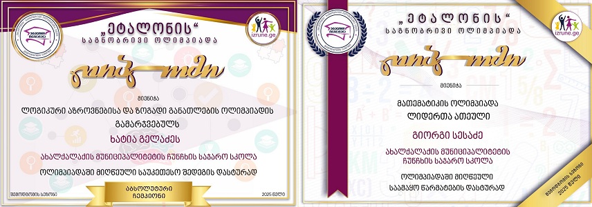 გიორგი სესაძემ მათემატიკის ოლიმპიადაში ასახელა სკოლა და ოჯახი და ოლიმპიადაში მიღწეული საამაყო წარმატების დასტურად დიპლომი მიენიჭა.
