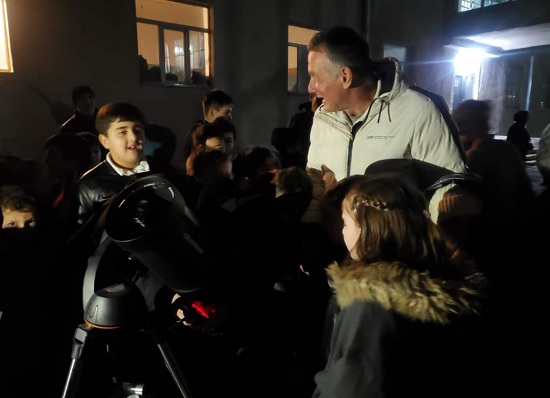 ლექციის შემდეგ კი, უკვე ღამის ცის ქვეშ, სკოლის ეზოდან ტელესკოპის საშუალებით მოსწავლეებს პლანეტებზე დაკვირვება შესთავაზა, რაც ბავშვებისთვის მნიშვნელოვან გამოცდილებად იქცა.