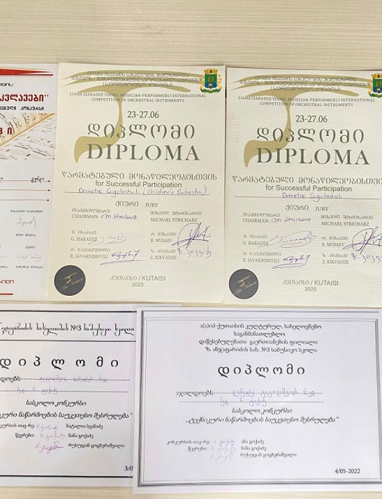 „დემეტრე არა მხოლოდ ნიჭიერი მუსიკოსია, არამედ გამორჩეულია საუკეთესო ადამიანური თვისებებითაც: პასუხისმგებლობით, თავმდაბლობითა და კეთილგანწყობით. ვულოცავთ მიღწევებს და ვუსურვებთ კიდევ უფრო დიდ წარმატებებს!“,- აღნიშნავენ სკოლაში.