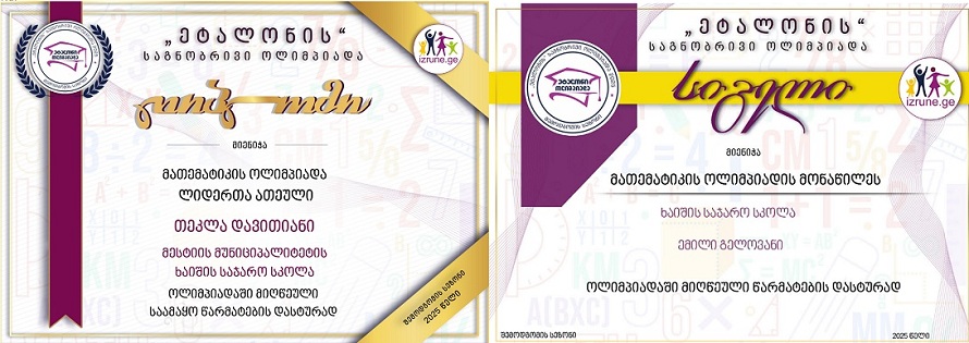 ოლიმპიადას დიდი შემართებით შეუერთდნენ მესტიის მუნიციპალიტეტის სოფელ ხაიშის საჯარო სკოლის მოსწავლეები - თეკლა დავითიანი და ემილი გელოვანი. მოსწავლეებმა ცოდნა და შესაძლებლობები წარმოაჩინეს და წარმატების დასტურად სიგელები დაიმსახურეს. ამასთან საამაყო შედეგები აჩვენა თეკლა დავითიანმა, რომელიც მათემატიკის ოლიმპიადაში, საქართველოს მასშტაბით, გამარჯვებულთა ათეულში მოხვდა. მას დიპლომი მიენიჭა.