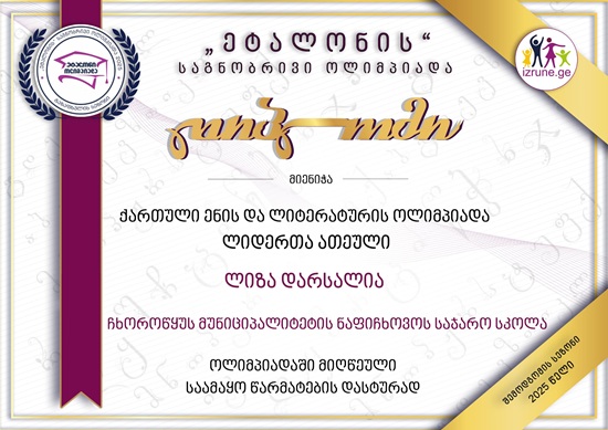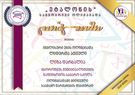 ნიკოლოზ დარსალია ლოგიკური აზროვნებისა და ზოგადი განათლების ოლიმპიადის ლიდერთა ათეულშია. ნია გულუა ინგლისური ენის ოლიმპიადის გამარჯვებულთა ათეულის წევრია.