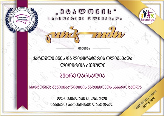 პეტრე დარსალია ქართული ენისა და ლიტერატურის და ინგლისური ენის ოლიმპიადების ლიდერთა ათეულში იკავებს საპატიო ადგილს. ლიზა დარსალიას სახელზეც ორი დიპლომია, რომლებიც ინგლისური ენისა და ქართული ენისა დ ლიტერატურის ოლიმპიადების გამარჯვებულთა ათეულში მოხვედრით დაიმსახურა.