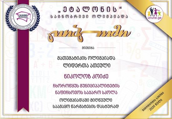 მოსწავლეებმა ცოდნა და შესაძლებლობები წარმოაჩინეს და წარმატების დასტურად სიგელები დაიმსახურეს. ამასთან, ნიკოლოზ კოიძე საქართველოს მასშტაბით, გამარჯვებულთა შორის მოხვდა, როგორც ქართული ენისა და ლიტერატურის, ისე მათემატიკის, ლოგიკური აზროვნებისა და ზოგადი განათლების და ინგლისური ენის ოლიმპიადებში.
