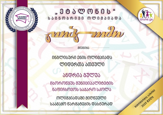 ანდრია გულუა კი ინგლისური ენის ოლიმპიადის, საქართველოს მასშტაბით საუკეთესო შედეგების მოსწავლეთა ათეულში მოხვდა.