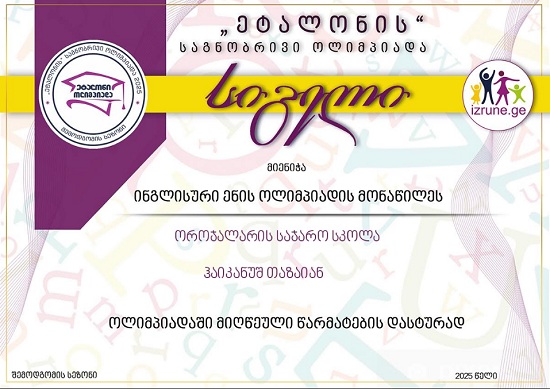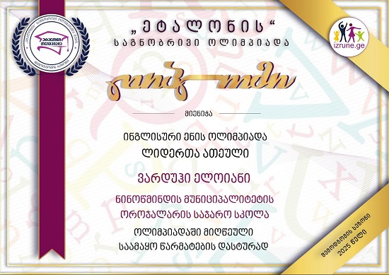ვარდუჰი ელოიანი კი ინგლისური ენის ოლიმპიადის შესაბამისი კლასის გამარჯვებულთა ათეულის წევრია.