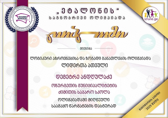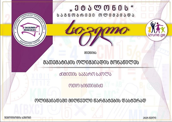 რაღა თქმა უნდა, „ეტალონის“ საგნობრივ ოლიმპიადას დიდი ინტერესით შეუერთდნენ სკოლის მოსწავლეები - დემეტრე ანდღულაძე და ოთო ხინთიბიძე. მოსწავლეებმა ცოდნა და შესაძლებლობები წარმოაჩინეს და წარმატების დამადასტურებელი სიგელებით დაჯილდოვდნენ. ამასთან, დემეტრე ანდღულაძე, შესაბამისი კლასის, გამარკვებულთა ათეულში მოხვდა როგორც ქართული ენისა და ლიტერატურის, ისე მათემატიკის, ლოგიკური აზროვნებისა და ზოგადი განათლების და ინგლისური ენის ოლიმპიადაში და დიპლომი მიენიჭა.