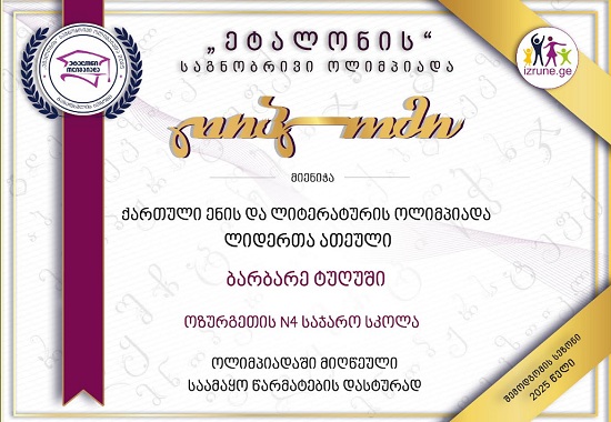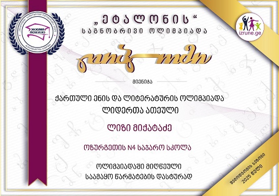ლიზი მიქატაძე ქართული ენისა და ლიტერატურის ოლიმპიადის ლიდერებშია. ქართული ენისა და ლიტერატურის ოლიმპიადის, შესაბამისი კლასის, ლიდერთა ათეულში ირიცხება ასევე ბარბარე ტუღუში.