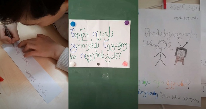 ბავშვებმა თანატოლებს წიგნთან მეგობრობისკენ მოუწოდეს და აღნიშნეს, რომ წიგნი არის - წ-არმატება, ი-ნტერესი, გ-ონიერება, ნ-ათელი აზრი, ი-დეა.
