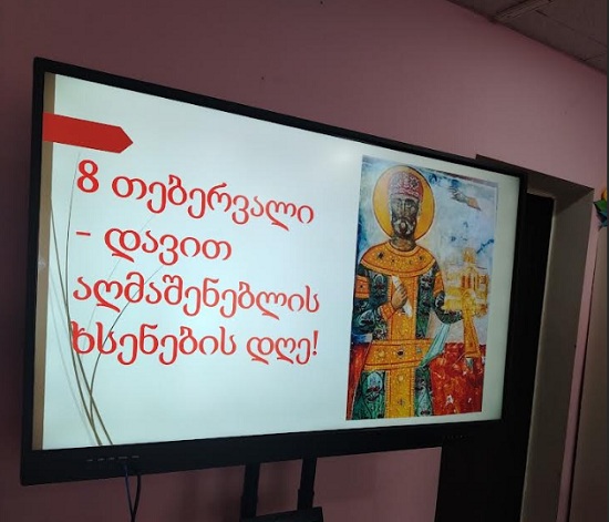 სკოლის ისტორიის მასწავლებელმა - ჯონი მუშკუდიანმა - მოსწავლეებს გააცნო დეტალური და საინტერესო ინფორმაცია დავით აღმაშენებლის მოღვაწეობის შესახებ.