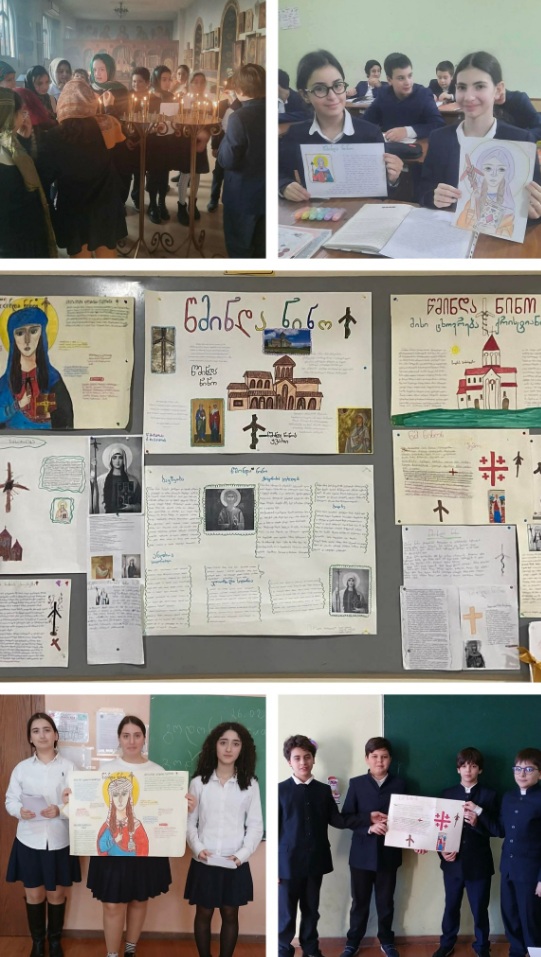 IV4 კლასში ჩატარდა ინტეგრირებული გაკვეთილი საღმრთო სჯულსა და ქართულ ენაში — „წმინდა ნინო ქართველთა განმანათლებელი“ (მასწავლებლები: რუსუდან თოიძე, თამარ ნინიძე).