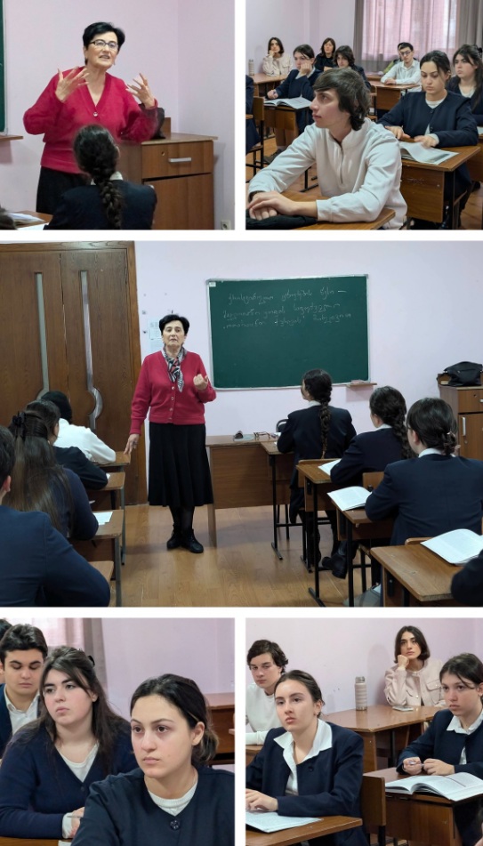 13 თებერვალს VI4 კლასისთვის (ნატალია სირაბიძე, ნაირა ზოიძე) შემეცნებითი გაკვეთილი ჩატარდა აჭარის კულტურულ მემკვიდრეობაზე (სოფიო სანიკიძე). III1 კლასის მოსწავლეებმა (ლამარა გოგიბერიძე, მაია ჭანუყვაძე, თამრიკო მექვაბიშვილი) მეხუთეკლასელებს გაუზიარეს ინფორმაცია წმინდა ნინოზე. დღე დაგვირგვინდა ანა ანუშიძის და ინგა მართალიშვილის ღია გაკვეთილებით.