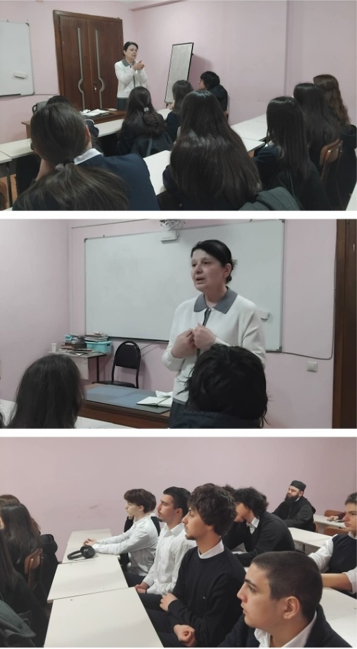 VIII4 კლასის მოსწავლეებს, ქეთევან ქაჯაიასთან და რუსუდან ურუშაძესთან ერთად, ჩაუტარდათ თავისუფალი გაკვეთილი თემაზე: "ქრისტიანული აზრი ხელოვნებაზე, პირველი ქრისტიანებიდან - დღემდე", სადაც შეხვდნენ თეოლოგ ირაკლი დეისაძეს.