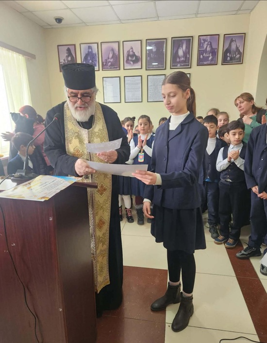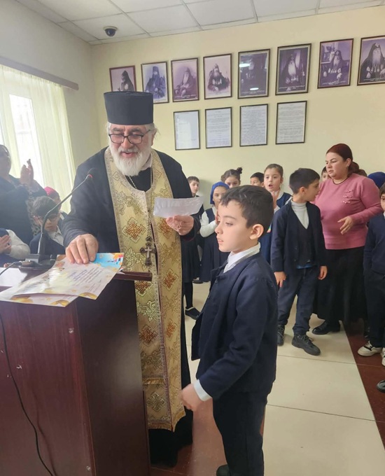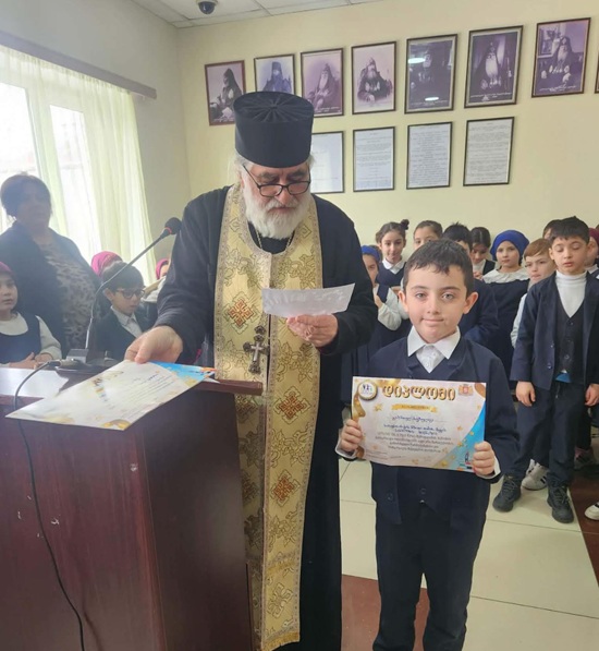 სკოლაში „ეტალონის“ საგნობრივი ოლიმპიადის წარმატებული მონაწილეების დაჯილდოების ცერემონია გაიმართა. ღონისძიებაზე სკოლის დირექტორმა, დეკანოზმა მირიან სამხარაძემ წარმატებულ მოსწავლეებს - გაბრიელ ხუბულავას, ანასტასია ტურაბელიძესა და ანდრია ტურაბელიძეს დიპლომები პირადად გადასცა და მიღწეული შედეგებისთვის მადლობა გადაუხადა.