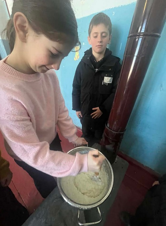 გაკვეთილის ფარგლებში, მოსწავლეები სამეგრელოში გავრცელებულ მეურნეობის დარგებსა და ადგილობრივ ტრადიციულ კერძებს გაეცნენ. მათ მოამზადეს და დააგემოვნეს სამეგრელოს ერთ-ერთი ყველაზე გავრცელებული და ტრადიციული კერძი - ღომი.