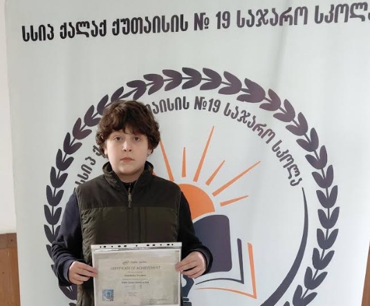 დღეს სკოლის დირექცია ქუთაისის N19 საჯარო სკოლის VIბ კლასის წარჩინებულ მოსწავლეს - თევდორე ძნელაძეს გვაცნობს.