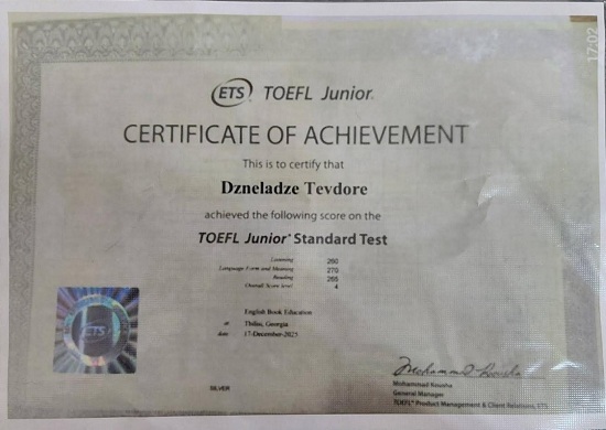 მოსწავლე TOEFI-ის საერთაშორისო ტესტირების გამარჯვებული