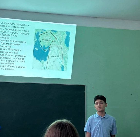 კვლევისას მოსწავლეებმა განსაკუთრებული ყურადღება დაუთმეს 2023 წელს თურქეთში მომხდარ დამანგრეველ მიწისძვრას. კატასტროფა დაკავშირებული იყო ანატოლიურ ტექტონიკურ ზონასთან, სადაც არაბეთისა და ევრაზიის ფილების მოძრაობა ძლიერ სეისმურ აქტივობას იწვევს.