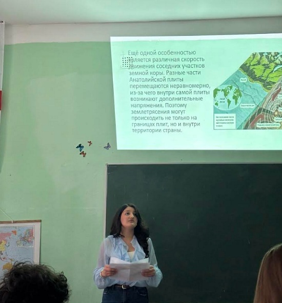 ახლახან, მე-10ა კლასის მოსწავლეებმა განახორციელეს საგანმანათლებლო პროექტი თემაზე - „სტიქიური მოვლენები, მიწისძვრა და მიწისძვრა თურქეთში“, რომლის მიზანი იყო სტიქიური პროცესების სიღრმისეული შესწავლა და ერთ-ერთი ყველაზე მასშტაბური თანამედროვე კატასტროფის გაანალიზება.