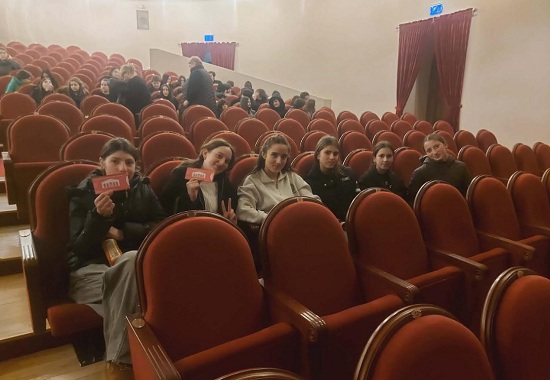 ნანახით აღფრთოვანებული მოსწავლეები მომდევნო სპექტაკლზე დასასწრებად ემზადებიან.