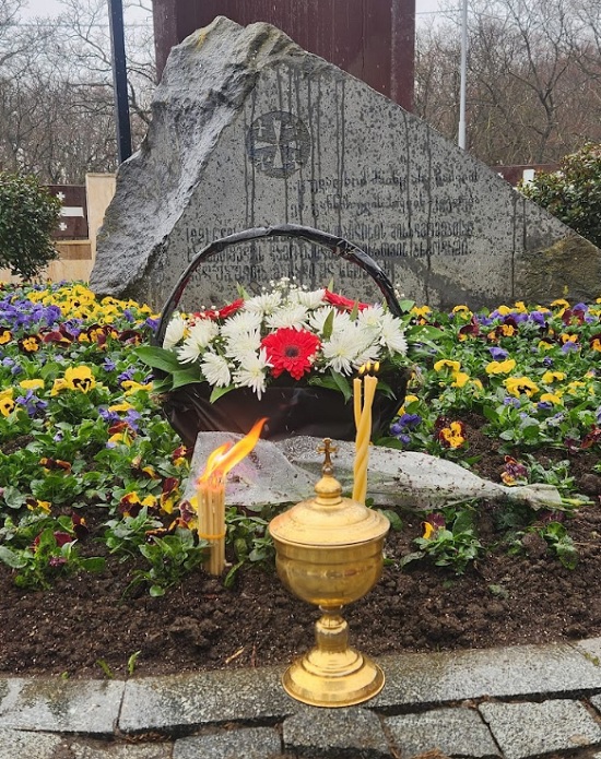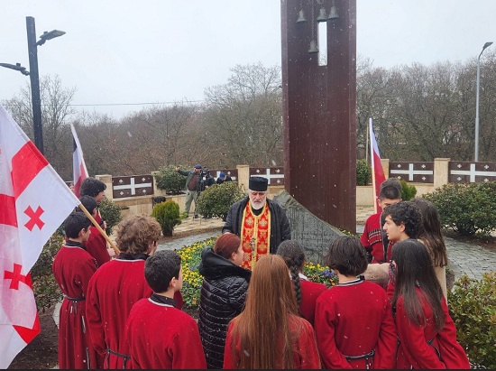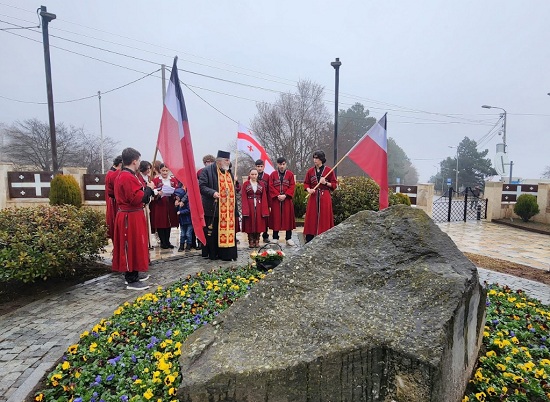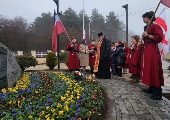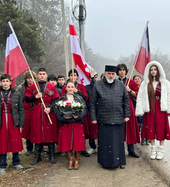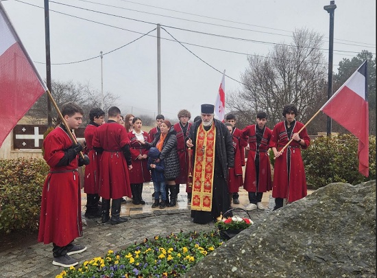 სკოლა-გიმნაზიის დირექტორმა, დეკანოზმა მირიან სამხარაძემ - სამშობლოსათვის თავგანწირული გმირების სულის მოსახსენებელი პანაშვიდი აღასრულა.