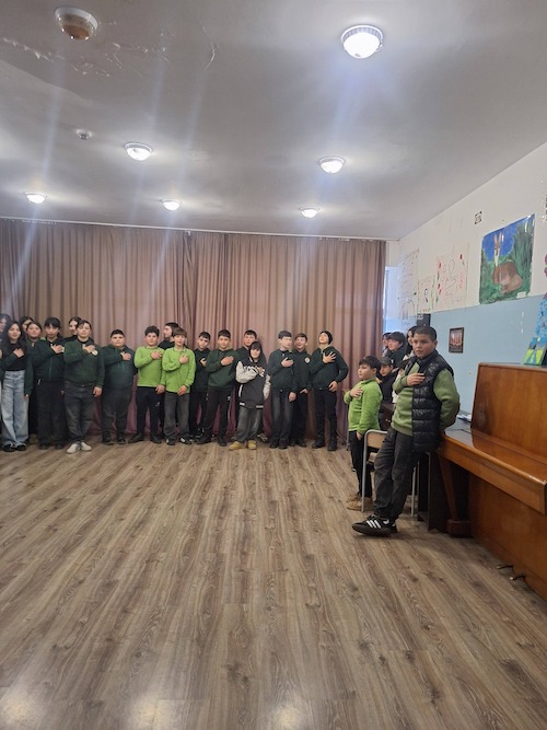 სკოლაში მოსწავლეს წარმატებას ულოცავენ და ახალი მწვერვალების დაპყრობას უსურვებენ.