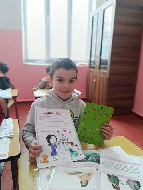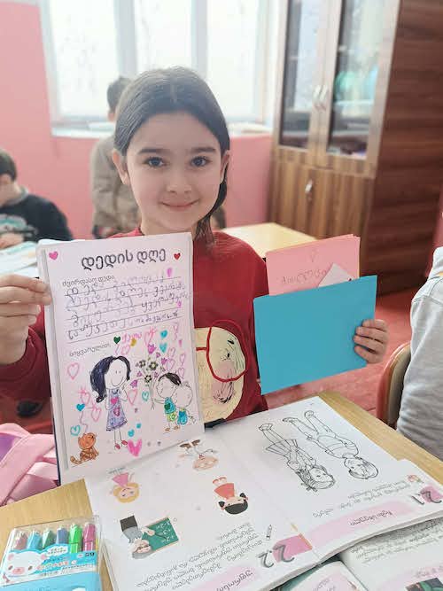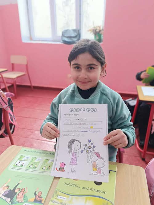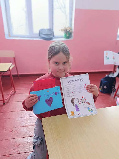 მესტიის მუნიციპალიტეტის სოფელ მულახის საჯარო სკოლის დაწყებითი საფეხურის მოსწავლეებმა დედებს 3 მარტი საკუთარი შემოქმედებით მიულოცეს.